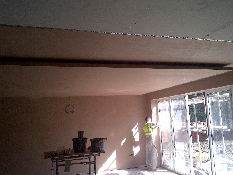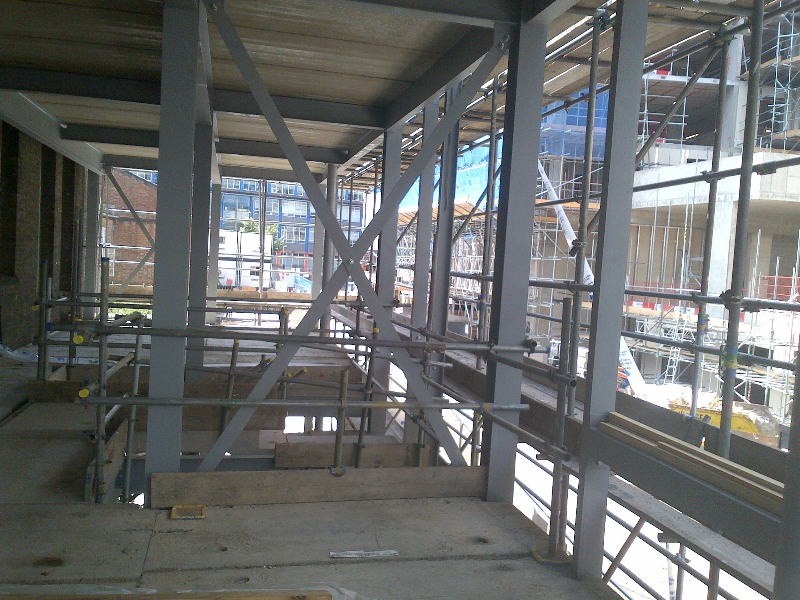 Extension to Community Centre in Greenwich. Supply and fix Metal stud partitions, fireproofing to steel columns and beams, dry lining and plaster finish.